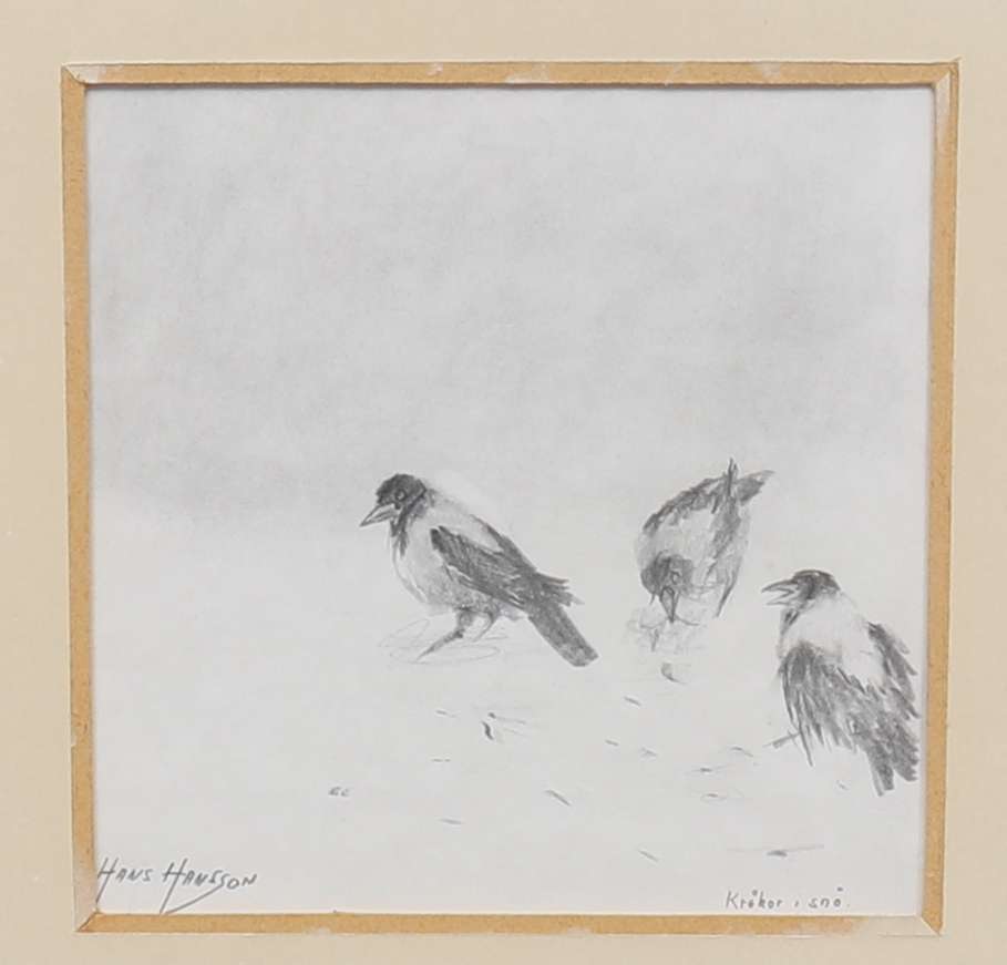 HANS HANSSON. Pencil, "Crows in the Snow